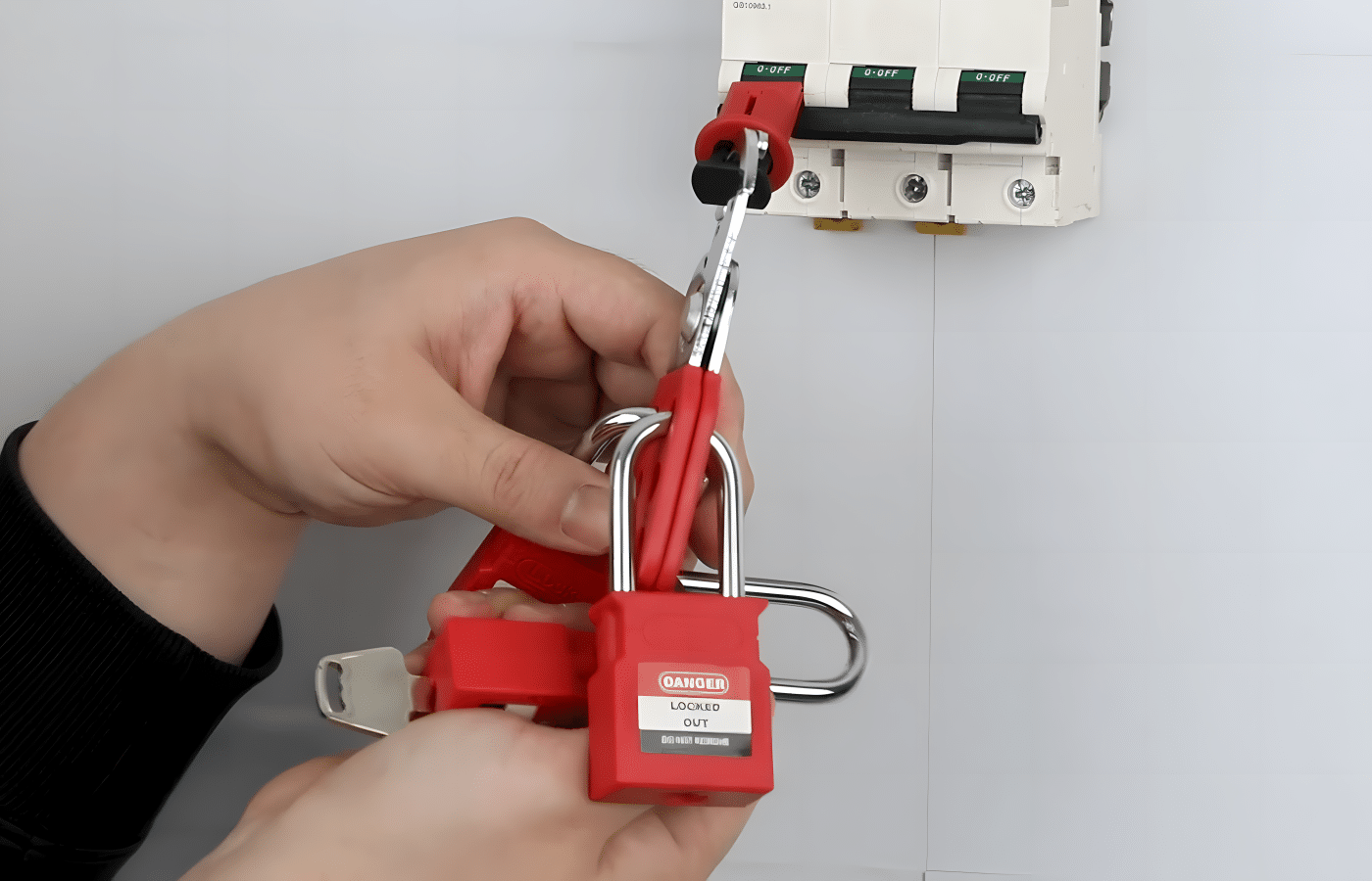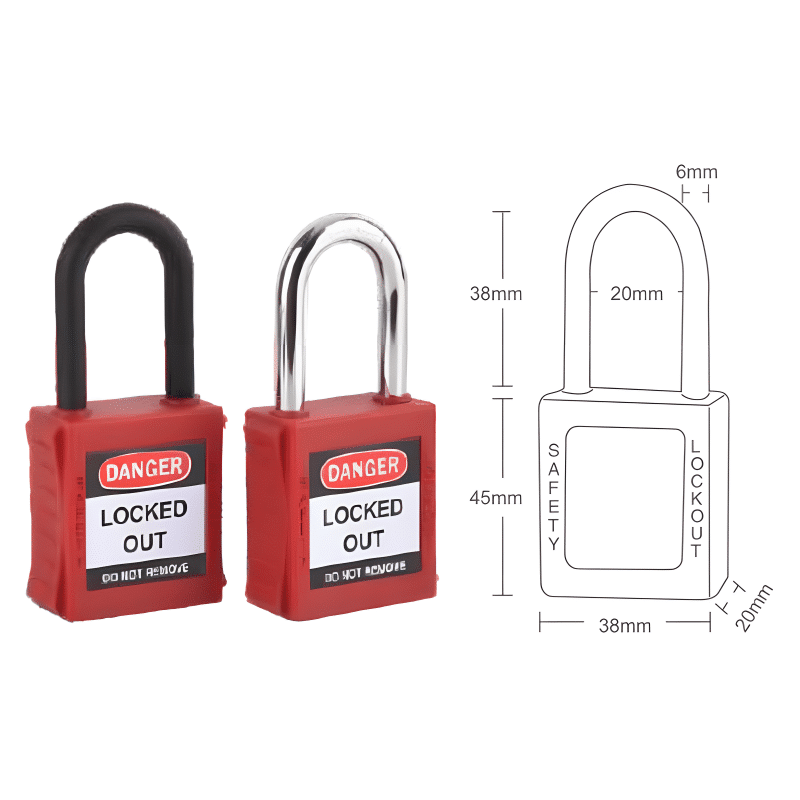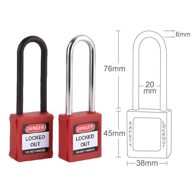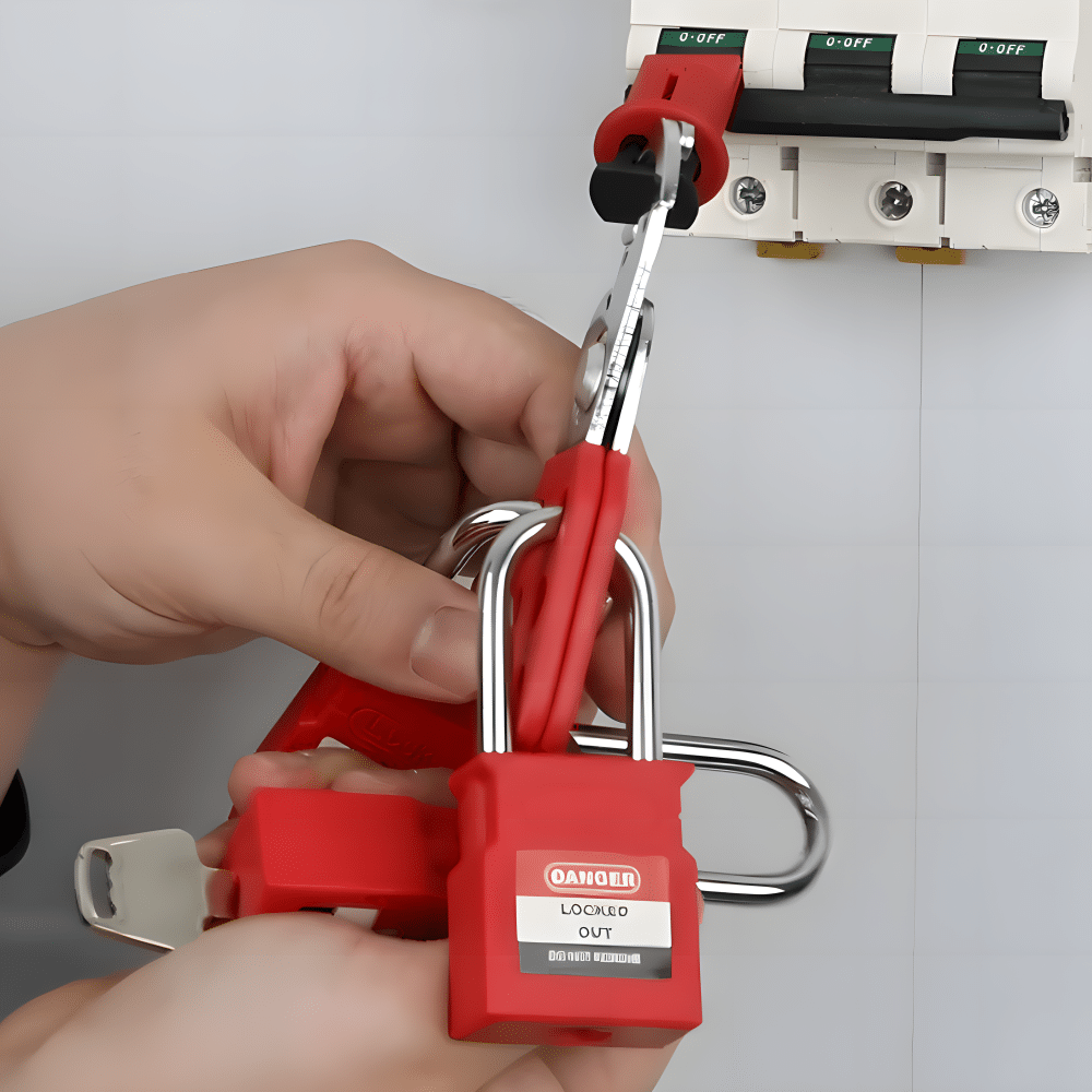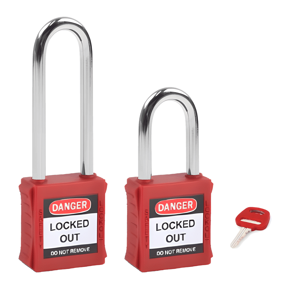 - ป้องกันการเกิดอุบัติเหตุในระบบไฟฟ้าและการทำงานกับอุปกรณ์ที่มีแรงดัน: เนื่องจากกุญแจนิรภัยบางรุ่นใช้วัสดุที่ไม่เป็นสื่อนำไฟฟ้า (Non-conductive shackle) ทำให้สามารถใช้งานในสภาพแวดล้อมที่มีความเสี่ยงต่อการถูกไฟฟ้าช็อต เช่น ระบบไฟฟ้า แผงวงจร หรืออุปกรณ์ที่มีแรงดันสูง