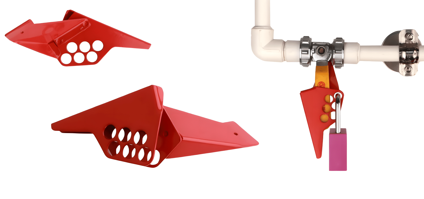 • คุณสมบัติ : ใช้งานง่าย ด้วยดีไซน์ชิ้นเดียว ทำให้อุปกรณ์นี้เป็นตัวเลือกที่เหมาะสมสำหรับการล็อคมือจับวาล์วให้อยู่ในตำแหน่ง “ปิด” สะดวกยิ่งขึ้น
