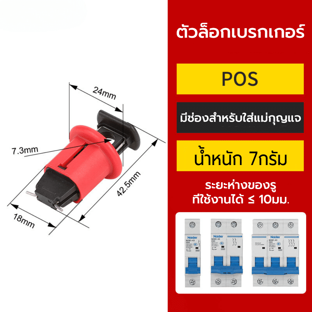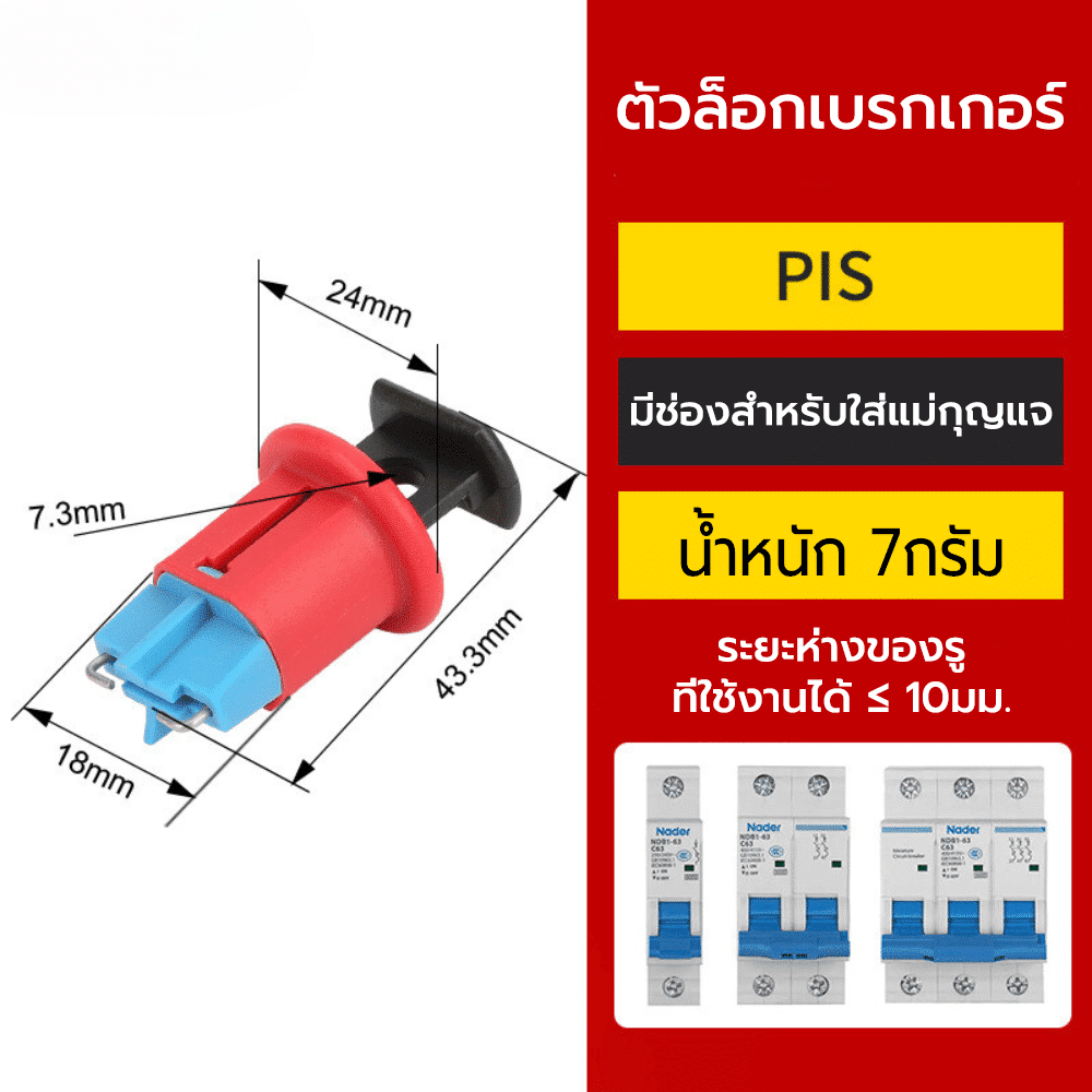 • การติดตั้ง: ติดตั้งง่ายด้วยการหนีบหรือล็อคลงบนเบรกเกอร์ และใช้ร่วมกับแม่กุญแจเพื่อล็อคเบรกเกอร์ให้แน่นหนา ป้องกันการเปิดใช้งานโดยไม่ได้รับอนุญาต
