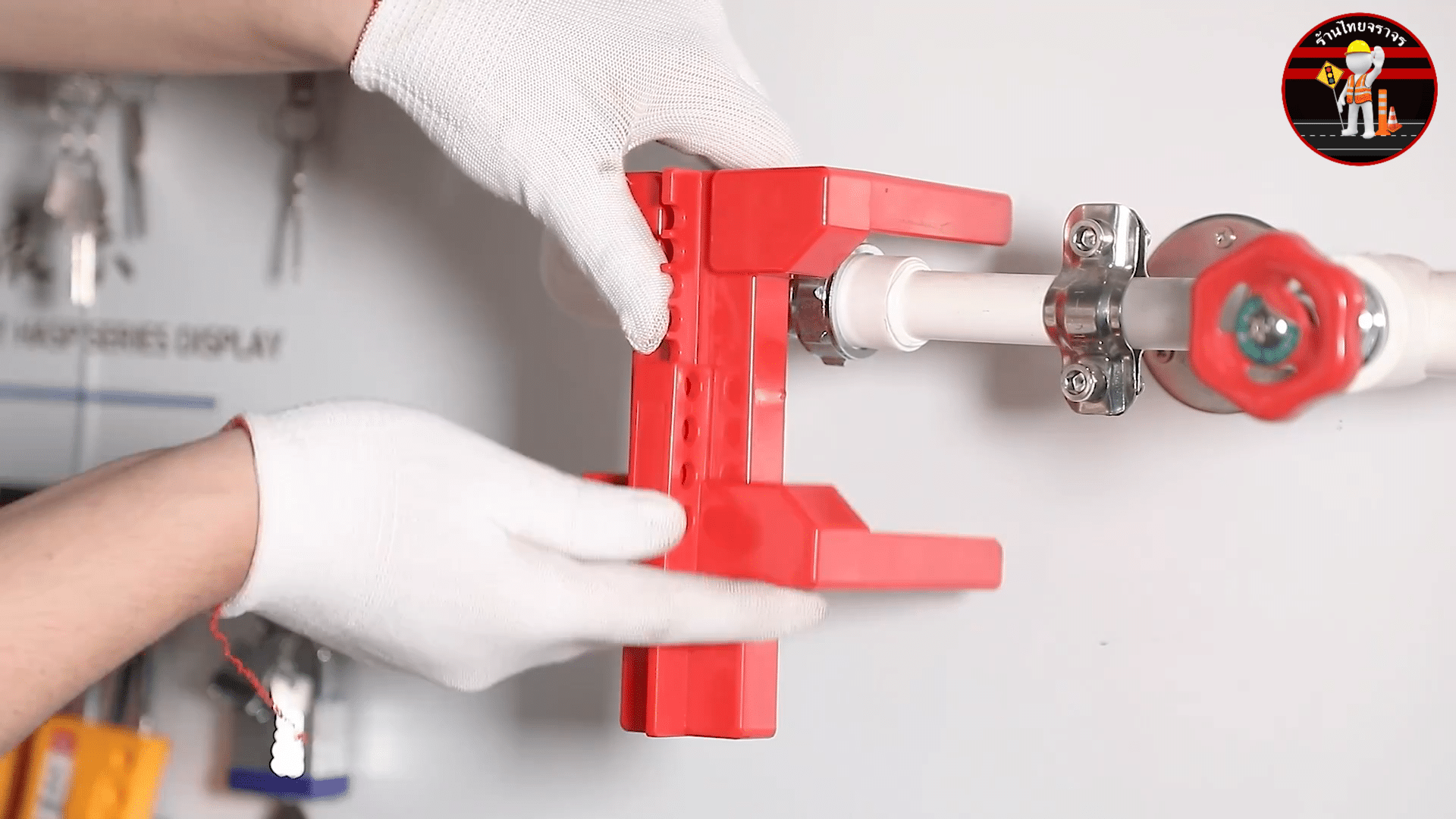นำตัวล็อคมาครอบหรือประกบกับส่วนควบคุมของวาล์ว (เช่น ด้ามจับหรือแกนหมุน) ในตำแหน่งที่ต้องการ เช่น ตำแหน่ง “ปิด” แล้วล็อคตัวล็อควาล์วให้แน่น