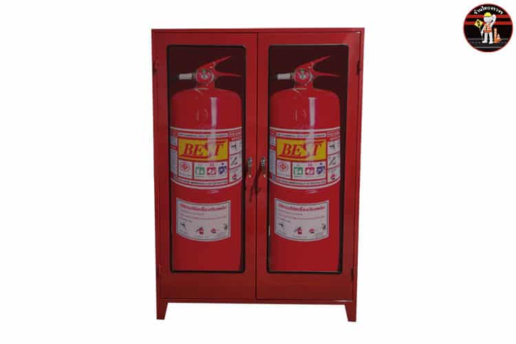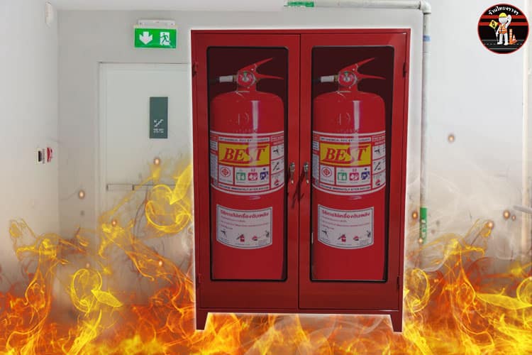 - นำถังดับเพลิงมาเก็บไว้ในตู้
