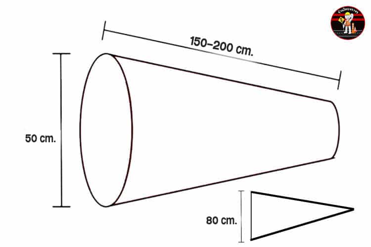 ถุงลมบอกทิศทาง เส้นผ่านศูนย์กลาง 50 Cm. ยาว 150-200 Cm. ชิ้นงานหน้ากว้าง 80 cm. สีส้มล้วน
