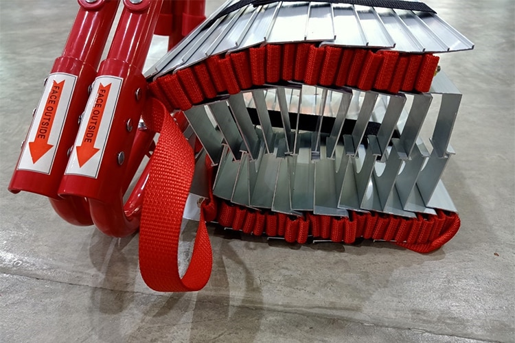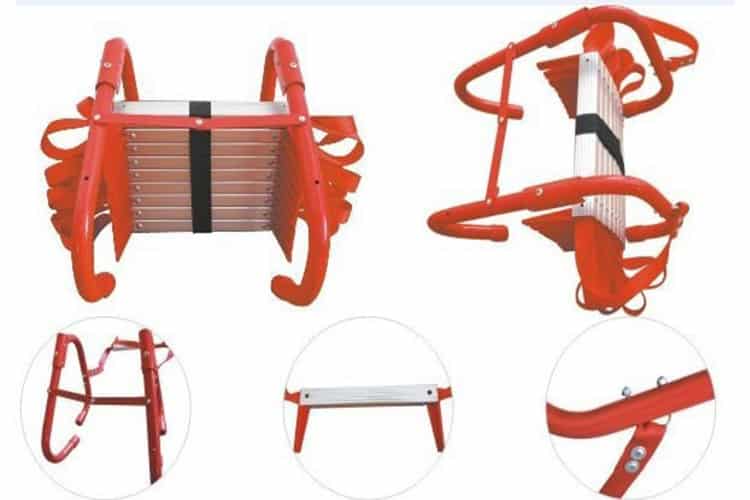 - บันไดหนีไฟชนิดพกพา น้ำหนักเบา ซึ่งทำให้พกพาสะดวก ผู้หญิงก็ใช้งานได้