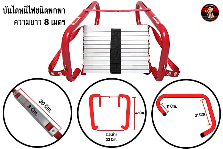 - สถานที่ไม่มีอุปกรณ์ดับไฟติดตั้ง อย่าชะล่าใจ บันไดหนีไฟชนิดพกพา พกติดบ้านหรือที่อยู่อาศัย สบายใจขึ้น 100%