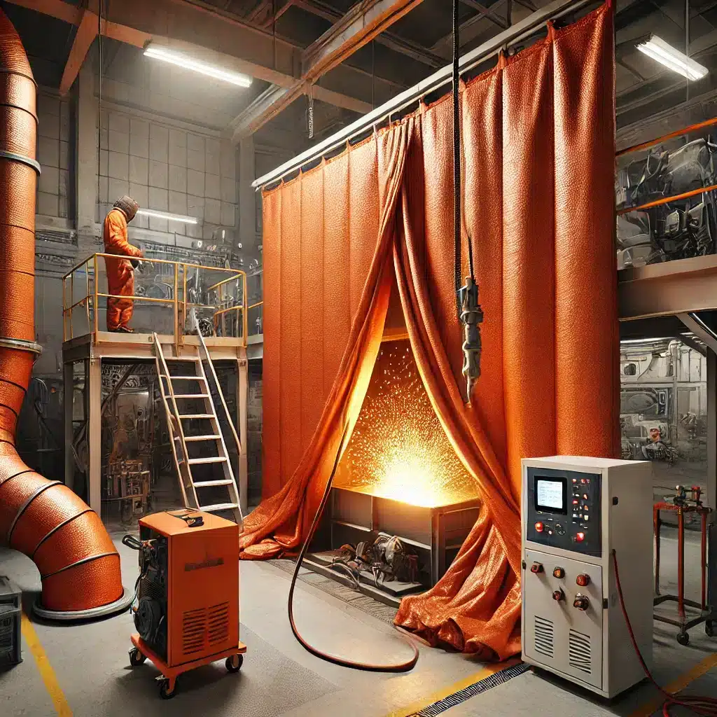 – ใช้ทำม่านกันความร้อนในโรงงานหรือสถานที่ที่ต้องการป้องกันอุณหภูมิสูง เช่น เตาเผา เครื่องจักร หรือพื้นที่ที่มีความร้อนสูง