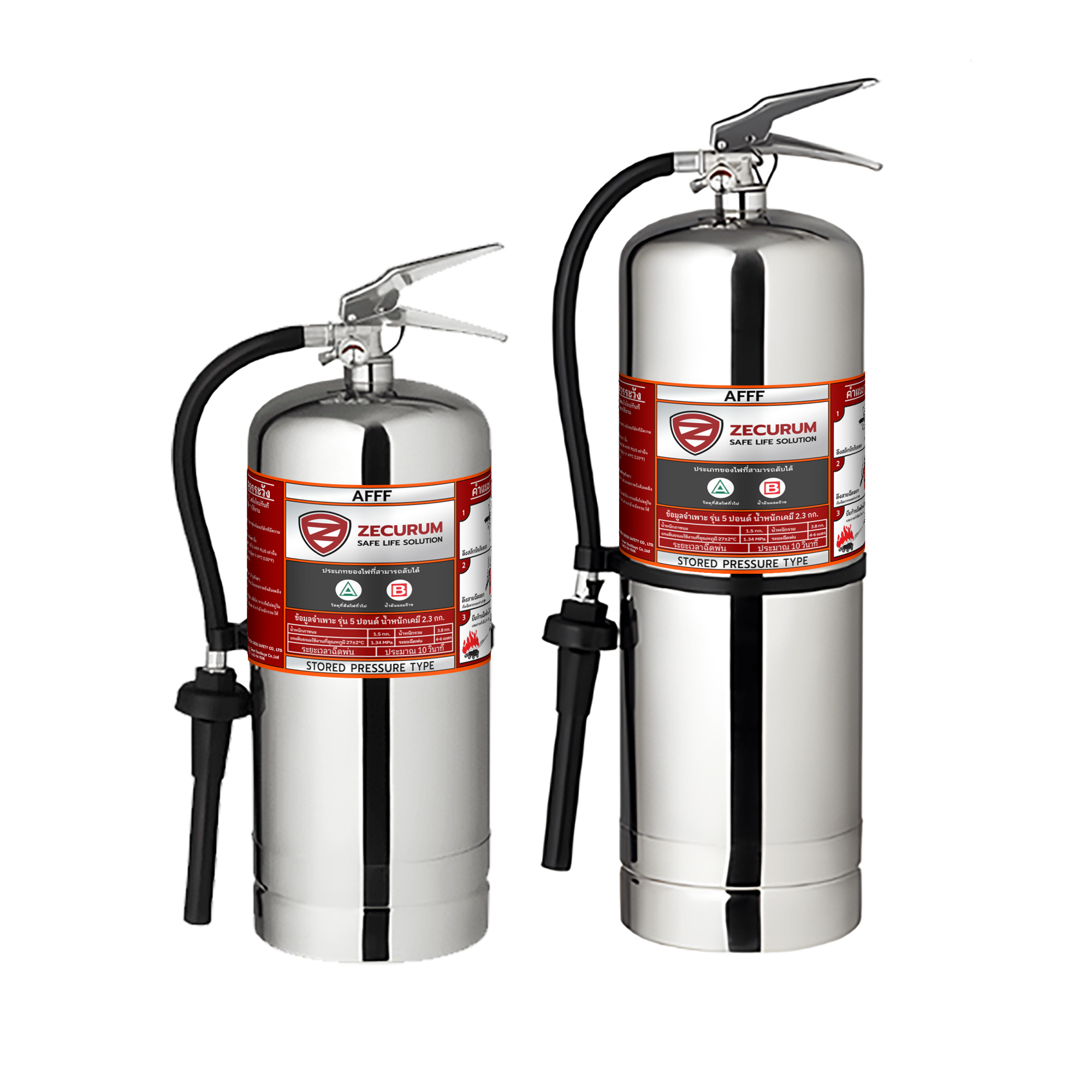 - ถังดับเพลิงสแตนเลส ชนิดโฟม (AFFF Pre-Mix Foam) ออกแบบมาเพื่อจัดการกับไฟประเภท A และ B อย่างมีประสิทธิภาพ ห้ามใช้ดับไฟฟ้า (ไฟประเภท C)