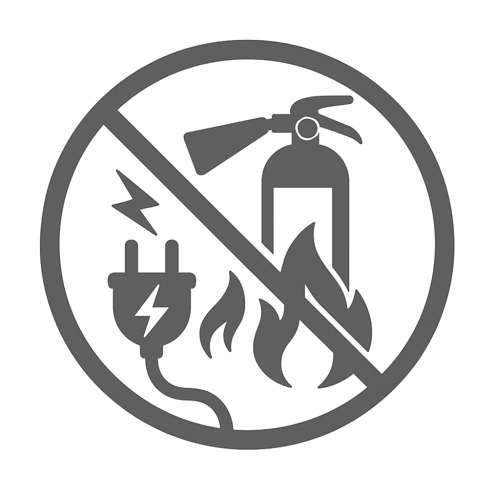 - ห้ามใช้ดับไฟฟ้า (ไฟประเภท C) หากฉีดใส่อุปกรณ์ไฟฟ้าที่มีกระแสอยู่ อาจทำให้เกิด ไฟช็อต