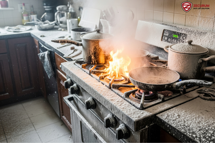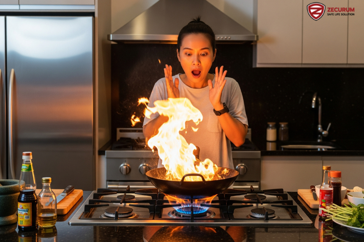 - ไฟไหม้ในครัวอาจเกิดขึ้นได้ภายใน ไม่กี่วินาที จากการทอดหรือผัดอาหาร