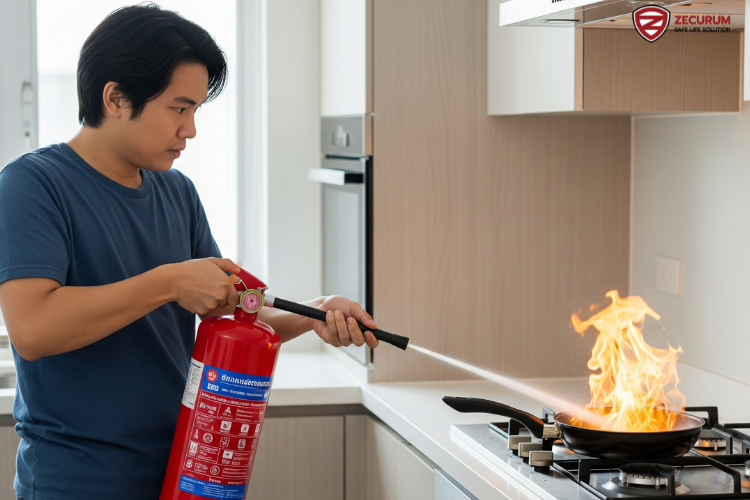 “ตอนทำอาหาร น้ำมันลุกบนเตา พอใช้ถังเคมีสูตรน้ำ ฉีดไปใช้เวลาไม่นานไฟดับทันที และที่ประทับใจคือไม่มีคราบเลอะครัวเหมือนถังผงเคมีแห้งทั่วไป ทำความสะอาดง่ายมากค่ะ”